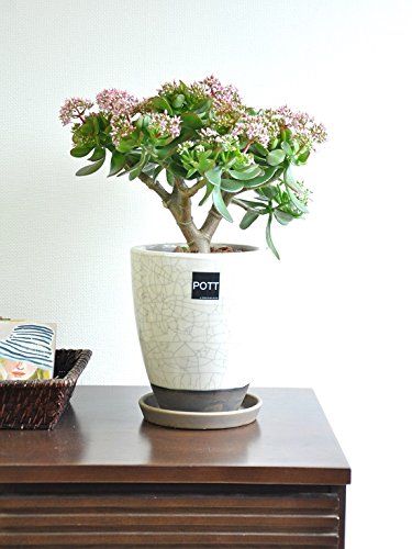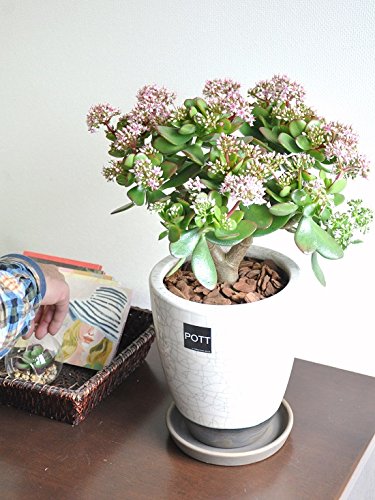 LAND PLANTS 【観葉植物】 金のなる木 花月 ( ツートンカラーのモダン陶器)