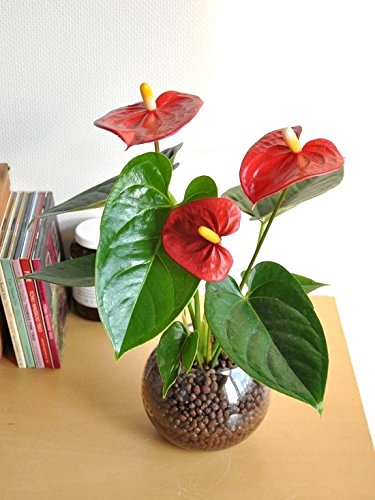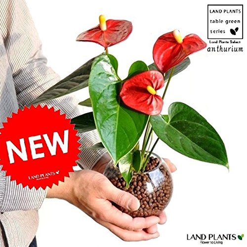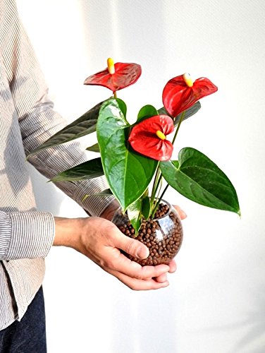 LAND PLANTS 【観葉植物】 ガラス瓶で育てるアンスリューム (花付き) 赤色