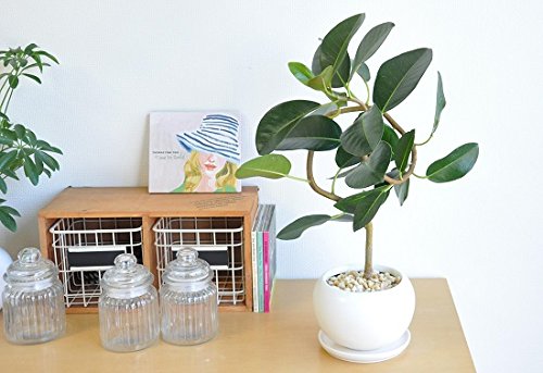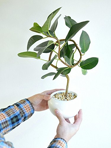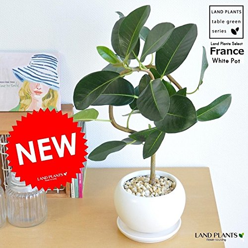 LAND PLANTS フランスゴム 曲がり樹形 白色大丸型陶器