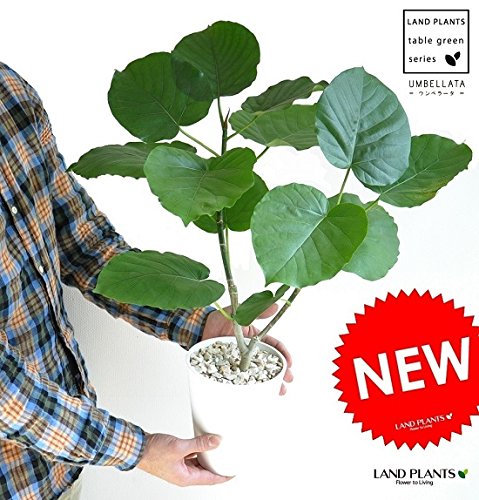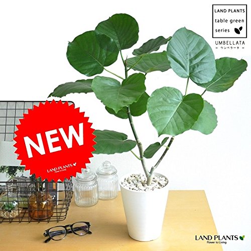 LAND PLANTS ウンベラータ 卓上サイズ 白セラアート5号鉢