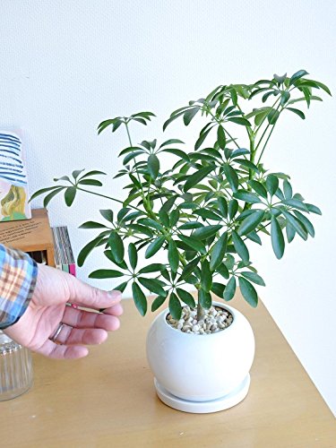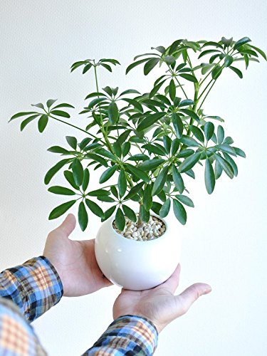 LAND PLANTS シェフレラ「カポック」 白色丸陶器鉢