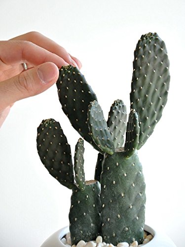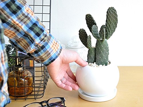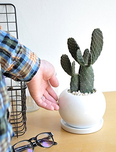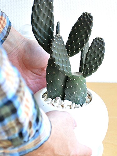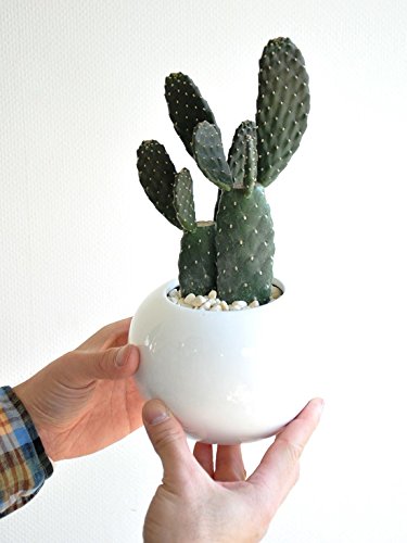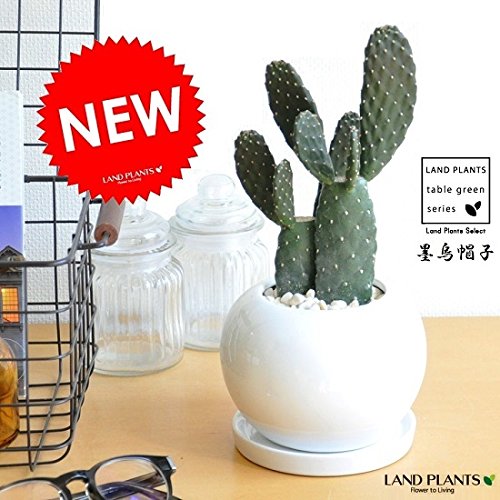 LAND PLANTS 【多肉植物】 ウチワサボテン 2本立ち 墨烏帽子 白色丸型陶器鉢