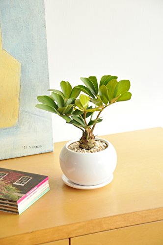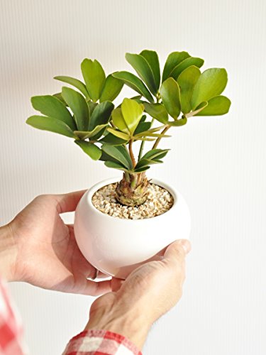 LAND PLANTS ザミア 白色丸型陶器鉢
