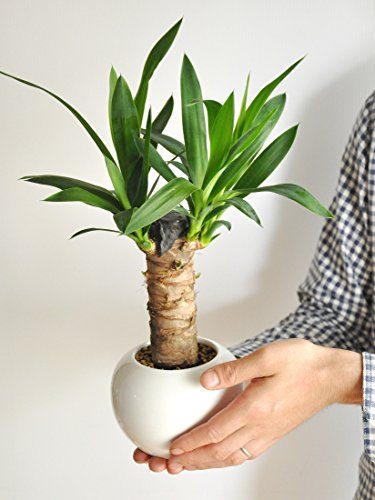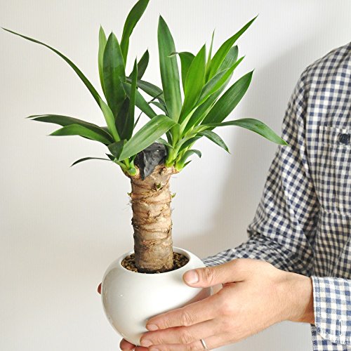 - 青年の木ユッカが。 大好評の白丸陶器鉢シリーズ人気の幹太樹形です。