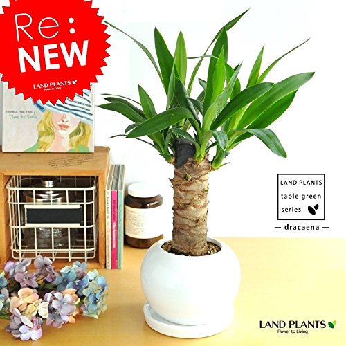 LAND PLANTS 青年の樹 ドラセナ・ユッカ 白色丸型陶器