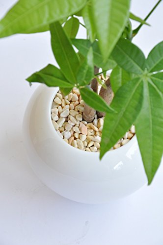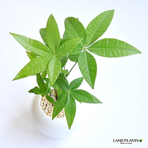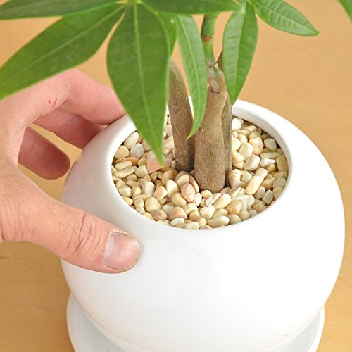 LAND PLANTS パキラ 卓上サイズ 白色丸型陶器鉢 3本株立ち