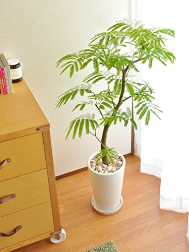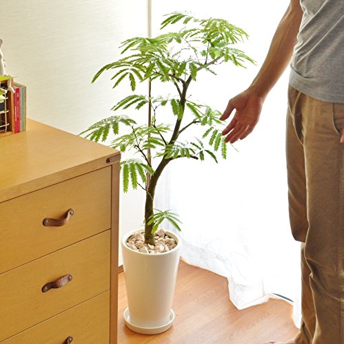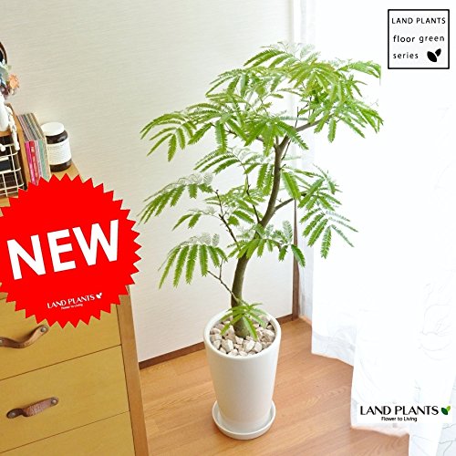 LAND PLANTS 【観葉植物】【美樹形】 エバーフレッシュ シンプル白色陶器 floor green series