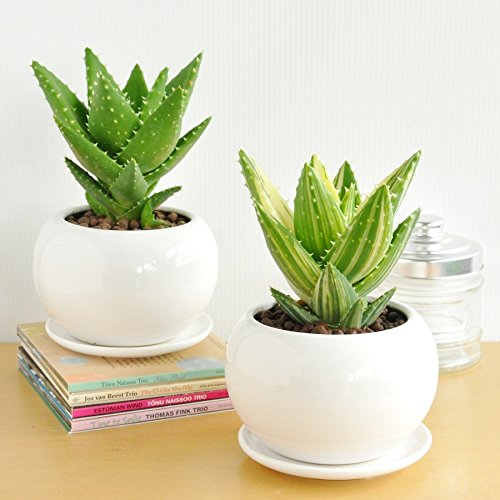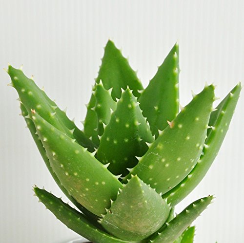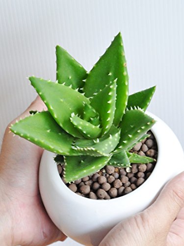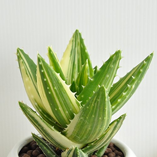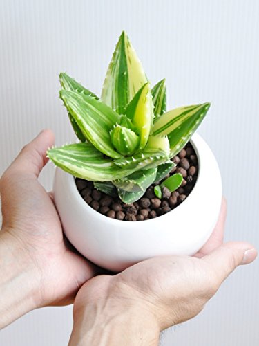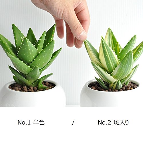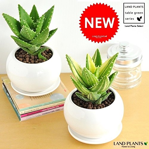 LAND PLANTS アロエ 不夜城 白色丸型陶器鉢 卓上サイズ No. 斑入り