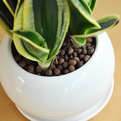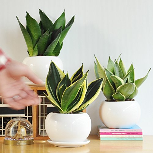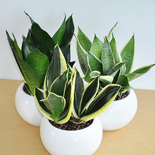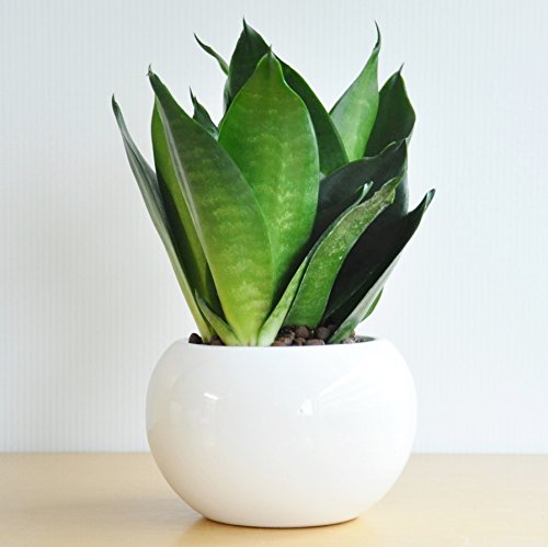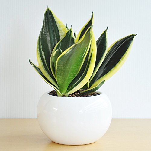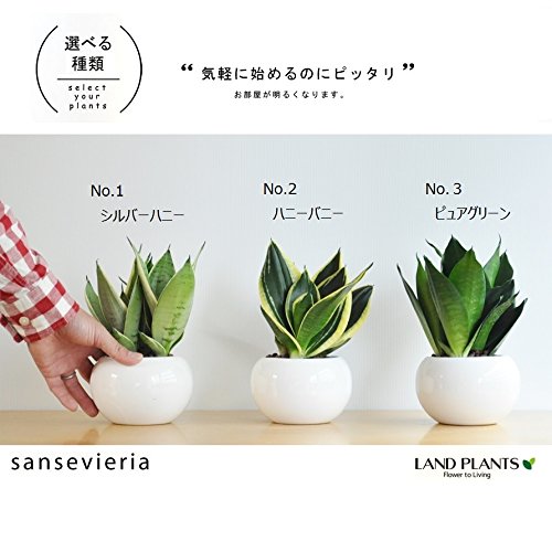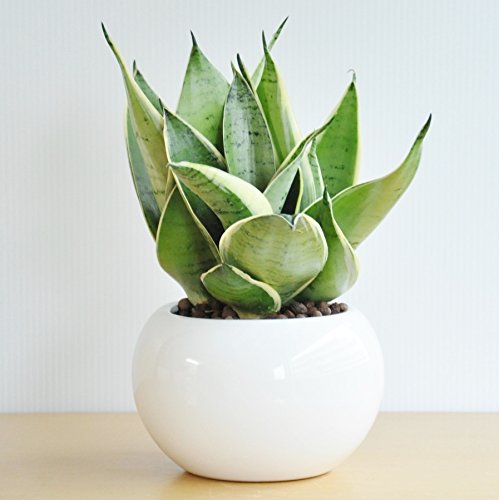 LAND PLANTS サンスベリア 白色丸型陶器鉢 シルバーハニー