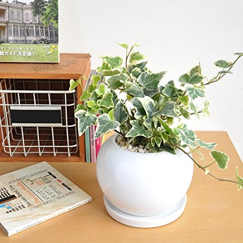 LAND PLANTS アイビー 白色丸型陶器鉢