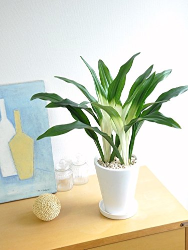 LAND PLANTS 万年青(オモト) あけぼのおもと 白色貫入陶器鉢