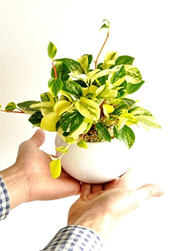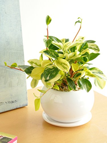 LAND PLANTS ペペロミア・グラベラ 白色丸型陶器 多肉質の植物
