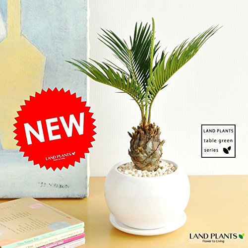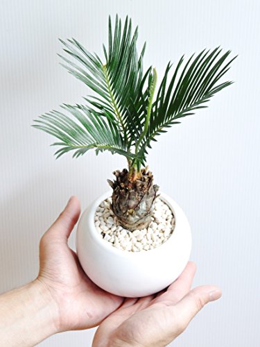 LAND PLANTS ソテツ 白色丸型陶器鉢 卓上サイズ