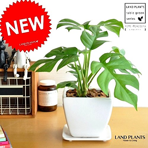 LAND PLANTS ヒメモンステラ 質感の良い白色台形陶器鉢 ミニモンステラ