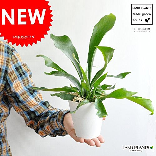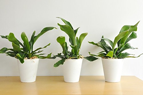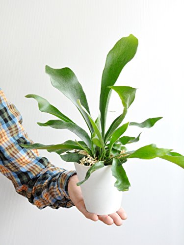 LAND PLANTS コウモリラン 卓上サイズ 4号白色鉢カバーセット