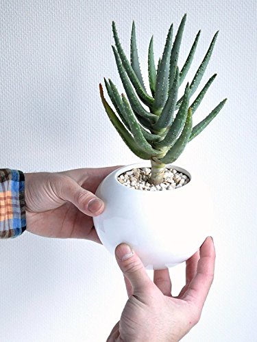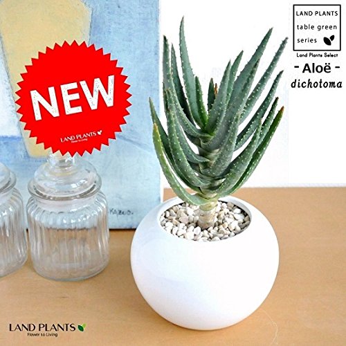 LAND PLANTS アロエ ディコトマ 白色丸形陶器鉢