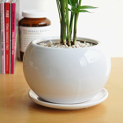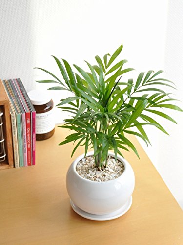 LAND PLANTS テーブルヤシ 白色丸型陶器 table green series