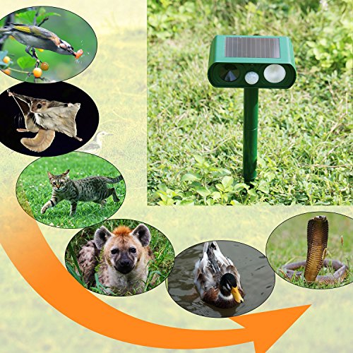 LANIAKEA 動物撃退器 超音波 ソーラー充電 害獣撃退 猫 鳥 ネズミ 犬 野良猫など駆除 超音波とLED強力フラッシュ 野良動物対策器 防水