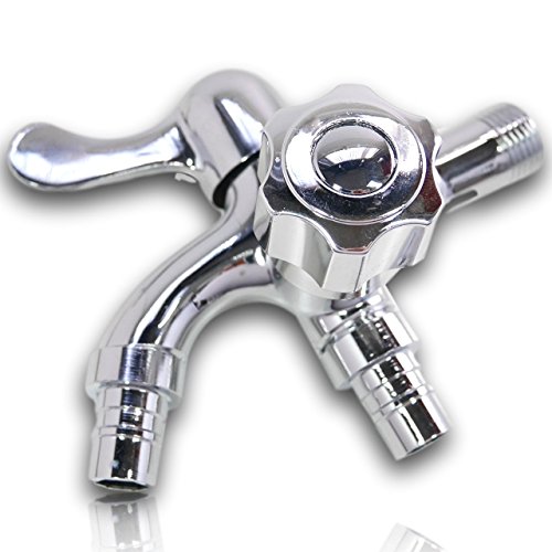 LAPHSODA 2口 蛇口 DIY ツーハンドル 洗濯機 ホース 付け替え 交換 ふた口 じゃぐち シルバー Cタイプ