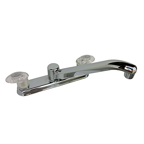 Lead free product, meets California AB-1953, Vermont and new federal standards for low lead applications. LASCO 07-0914 Plastic Kitchen Faucet, Two Lucite Lever-Handles, without Spray, Chrome Finish. Non-metallic kitchen faucet less spray. Two handle chrome plated non-metallic kitchen faucet. Two Lucite lever handles. 8-inch center kitchen faucet. Lead free product, meets California AB-1953, Vermont, and new federal standards for low lead applications.