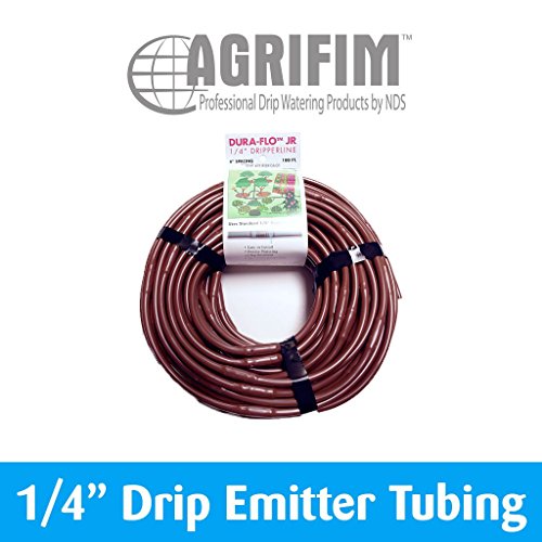 36' maximum length, cap end with goof plug. LASCO Plumbing Specialties 15-5592 1/4-Inch by 100-Foot 12-Inch Spacing Dura-Flo Drip Soaker Tubing . Dura-flu drip irrigation laser cut soaker line with 12-Inch spacing. Dual exit holes 180-Degree apart. Brown in color.
