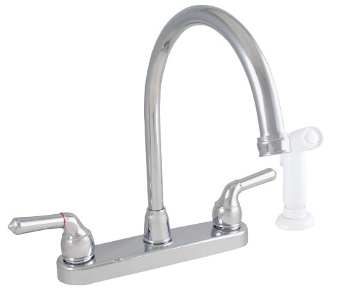 Ldr絶妙なデュアルチューリップハンドルキッチン蛇口with Gooseneck andホワイトスプレー 952 36425CP 1