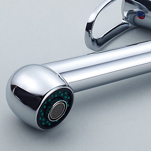 - 【引出しなデザイン】:ホースが引き出せるので、洗髪のすすぎや、洗面器の掃除に便利です。水はねしにくい泡まつシャワー。お掃除の時間がぐっと減ります。使用範囲が広い。スパウトは引き出してハンドシャワーとしても使えるため、シンクのすみずみまできれいに洗える。