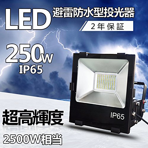 避雷型LED投光器 LEDランプ LED作業灯 LED集魚灯 250W 40000lm IP65防水避雷防塵 防錆 防虫 角度調節可能 照射角度120° 5mコード 屋外・屋内兼用 家庭用コンセントでOK 2年保証 電球色3000K