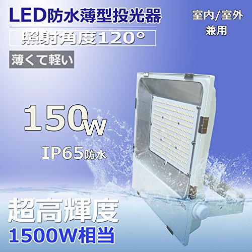 超薄型LED投光器 LED作業灯 LED集魚灯 150W消費電力 24000lm IP65防水防塵 防錆 防虫 角度調節可能 照射角度120° 5mコード 屋内外兼用 2年保証 昼光色6000K