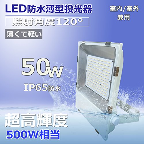 超薄型LED投光器 LED作業灯 LED集魚灯 50W消費電力 8000lm IP65防水防塵 防錆 防虫 角度調節可能 照射角度120° 5mコード 屋内外兼用 2年保証 昼光色6000K