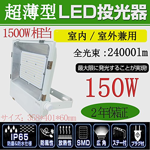 超薄型LED投光器 LED作業灯 LED集魚灯 150W消費電力 24000lm IP65防水防塵 防錆 防虫 角度調節可能 照射角度120° 5mコード 屋内外兼用 2年保証 電球色3000K
