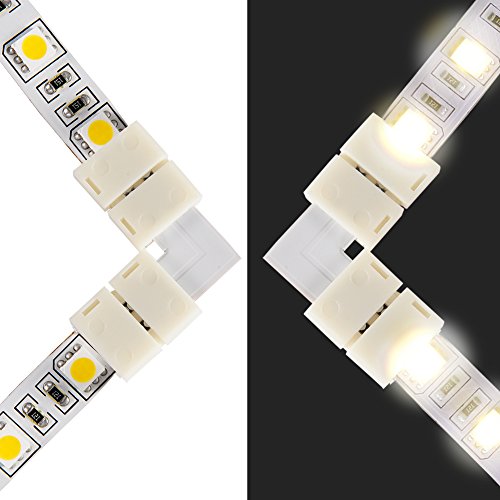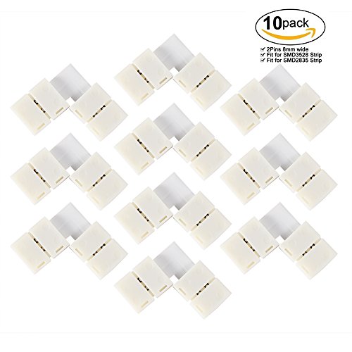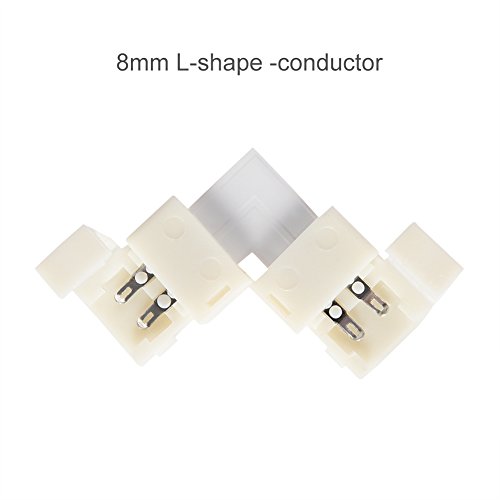 LEDGLE L字型コーナーアダプタ 8mm 2PIN 3528型 単色LEDテープライト延長コネクター L字型コーナーコネクタ L字型接続端子 直角スナップコネクタ Lタイプコネクタ 半田付け不要 10個セット