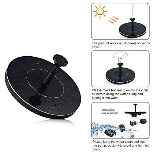 - この噴水ポンプは太陽光で駆動され、水の強さと高さを太陽光に依存します。太陽光が弱すぎると、噴水は連続的に働かず、停止することが可能です。