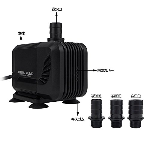 梱包内容:1*水中ポンプ、3*ホースアダプター(19/22/25mm)