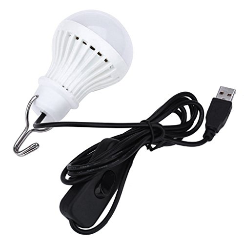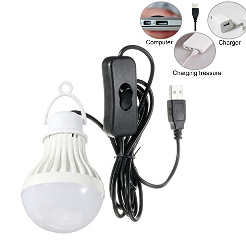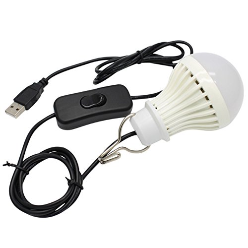 LEDGLE 5W USB LED電球 ポータブル LEDライト USBライト 電球形 USB給電 USB端子 スイッチ付き キャンプライト アウトドア ランタン デスクライト ベッドランプ 車中泊ライト 停電ライト 緊急ライト LED 照明ライト 長寿命 省エネ 1.8M延長ケーブル 電球色