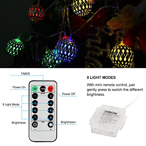 LEDGLE 20球 モロッコボール ストリングライト 7M 8モード リモコン付き IP65防水 単三電池式 (四色)