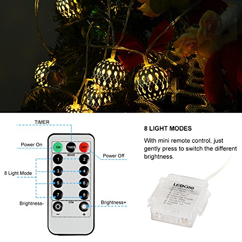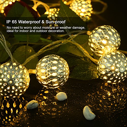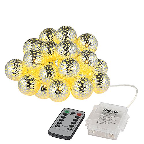 LEDGLE 20球 モロッコボール ストリングライト 7M 8モード リモコン付き IP65防水 単三電池式 (電球色)