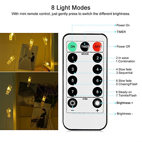 LEDGLE 30 LED写真クリップ ストリングライト 6m 8点灯モード IP65防水 電球色 リモコン付き DIY 壁飾り イルミネーションライト クリスマス/新年/結婚式/誕生日/パーティー飾りなどに最適