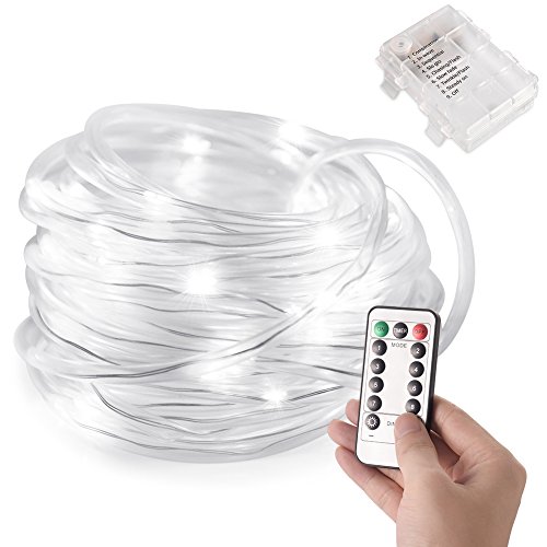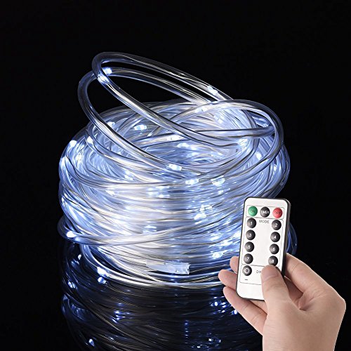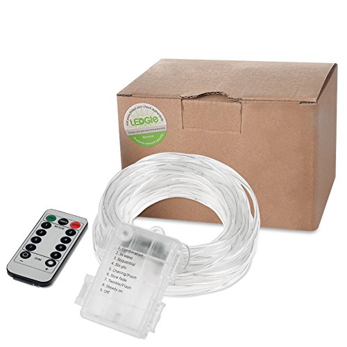 LEDGLE ロープライト イルミネーションライト 10m 100LED IP66防水仕様 RGB 8モード点灯 リモコン付き 電池式 クリスマス 結婚式 パーティー (ホワイト)