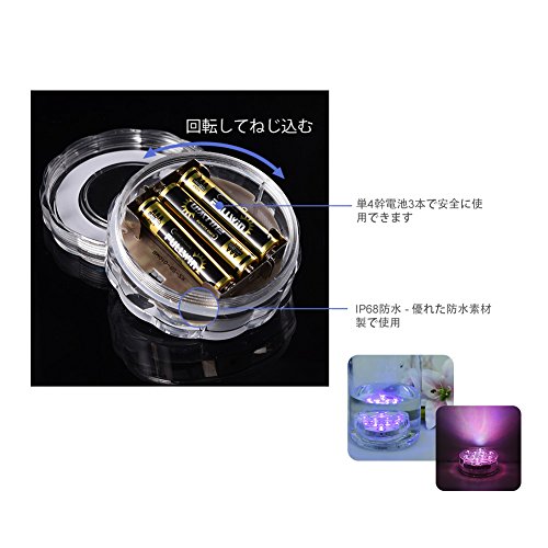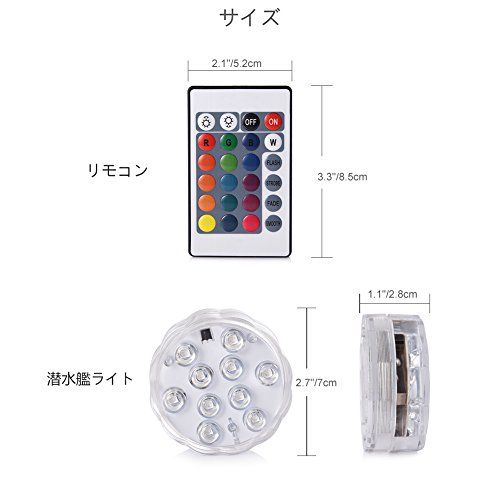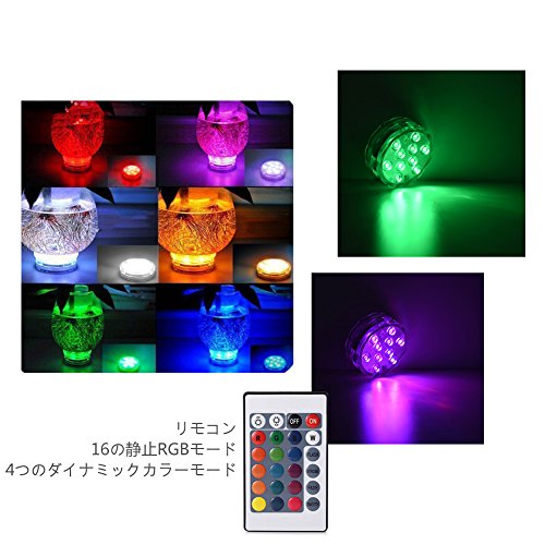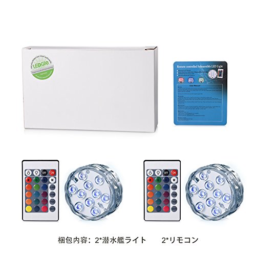 LEDGLE LED潜水ライト 水中LEDライト サブマリンLEDランプ ポータブル 魚タンクライト リモコンで操作 PSシェル 10灯LED バッテリー駆動 IP68防水 ワイヤレスデザイン 2点セット