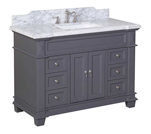 Kitchen Bath Collection KBC5948GYCARR Elizabeth Bathroom Vanity with Marble Countertop Cabinet with Soft Close Function and Undermount Ceramic Sink Carrara/Charcoal Gray 48 [並行輸入品]