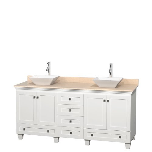 Wyndham Collection Acclaim 72 inch Double Bathroom Vanity in White Ivory Marble Countertop Pyra White Sinks and No Mirrors