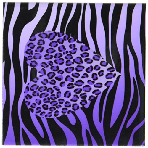 Rikki Knight Purple Leopard Heart on Zebra Background Design Art Ceramic Tile 4 by 4-Inch