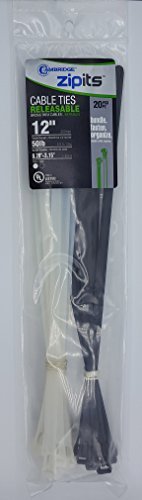 Cambridge ZipIts Releasable/Reusable Cable Ties 20 Pcs Assortment - 12 Nylon Cable Ties Kit 50 Lbs Tensile Strength Natural & UV Black