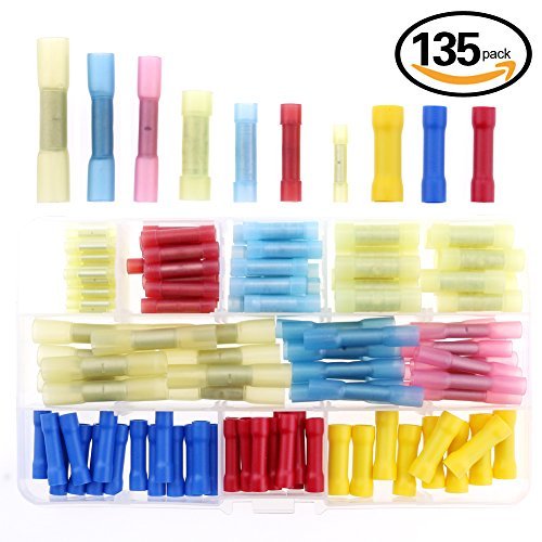 Hilitchi 135Pcs Waterproof Nylon Heat Shrink Butt Insulated Terminals Quick Splice Electrical Wire Crimp Connectors Kit