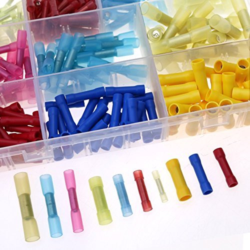 Hilitchi 260Pcs Waterproof Nylon Heat Shrink Butt Insulated Terminals Quick Splice Electrical Wire Crimp Connectors Kit