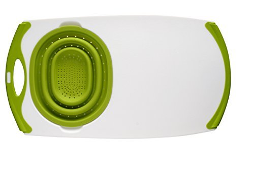 Dexas Over-The-Sink Strainer Grippboard Cutting Board and Strainer White and Green