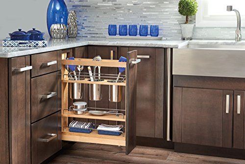 Rev-A-Shelf - 448UT-BCSC-5C - 5 in. Pull-Out Wood Base Cabinet Utensil Organizer with 3 Bins and Soft-Close Slides