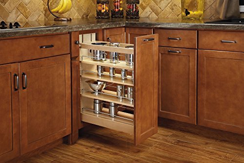 Rev-A-Shelf 448-BCSC-9C Pull-Out Wood Base Cabinet Organizer with Soft-Close Slides 9 Natural