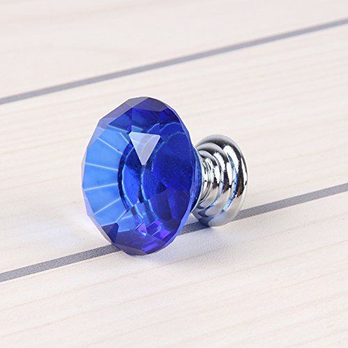 Feesy Diamond Shape Crystal Glass 30mm Drawer Knob Pull Handle Usd for Caebinet Drawer (Blue)